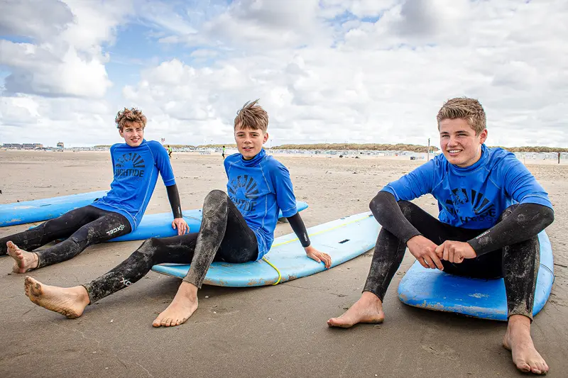 Bij High Tide Surf & Food organiseren we sportieve en leerzame schooluitjes aan zee op het strand van IJmuiderslag. Een dag buiten waarin leerlingen bewegen, samenwerken en nieuwe ervaringen opdoen, met de zee als leeromgeving.